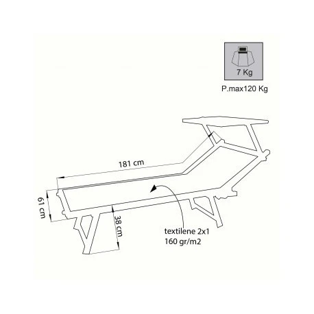 Lettino prendisole con tettuccio, reclinabile in 3 posizioni.