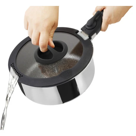 Set di pentole in acciaio inox lucidato a specchio.